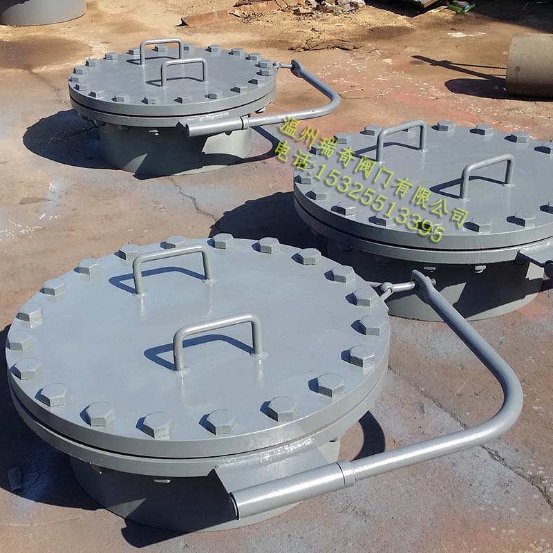 人孔已有成型產品,直徑通常為600mm。人孔中心距地板一般為750mm。便于工作人員在安裝、清洗、維護時進出油罐或通風。非金屬油罐的人孔設在罐頂上,金屬油罐的人孔設在罐壁最下圈板上。大都為直徑600mm的圓孔,其中心距底板750mm,為油罐清洗或維修人員進出油罐用,又稱作道門。檢修清理油罐時刻利用人孔進行采光和通風。立式油罐的容量在5000m3以下時設1~2個人孔,5000m3以上的設2個人孔。人孔的安裝應與進出油管線相隔不大于90°。當只設一個人孔時,應將其置于罐頂透光孔的對面;當設2個人孔時,其中一個設在透光孔的對面,另一個應至少與第一個人孔相隔90°。人孔應有一個設在進出油管右側附近,并盡量使人孔正對罐室密閉門,以便人員進出、維修油罐和通風接管用。由于人孔安裝在油罐的最下層體圈上,防滲漏就顯得特別重要。要求兩法蘭結合面必須保證其平直度,無飄扭現象。加強板和法蘭應盡量在整塊鋼板上切割而不拼接。法蘭和蓋板上加工有密封圈,在施工中要特別注意保護。密封用3mm厚石棉橡膠墊片,不允許有折裂。安裝人孔蓋板上緊螺栓時,要成對角均勻用力,以防孔蓋變形。