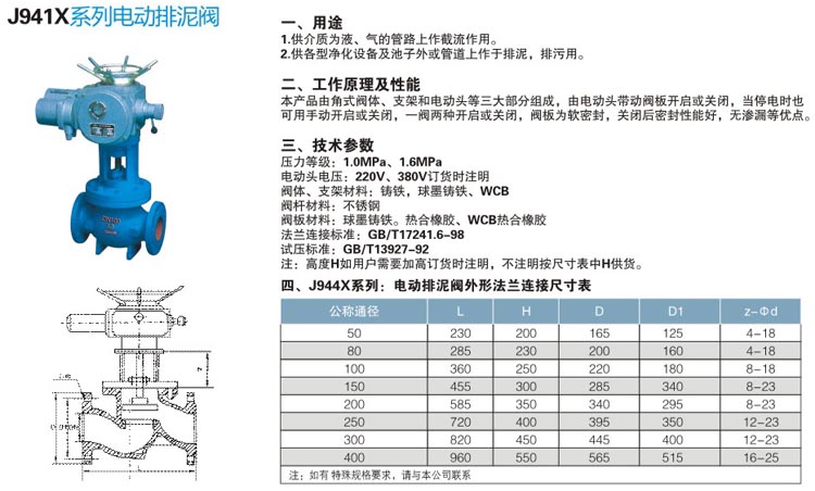 電動排泥閥又名電動隔膜排泥閥,由閥體、支架和電動頭等三大部分組成,由電動頭帶動閥板開啟或關閉,當停電時也可用手動開啟或關閉,一閥兩種開啟或關閉,閥板為軟密封,關閉后密封性能好,無滲漏等優(yōu)點。