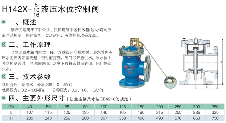 H142X液壓水位控制閥技術參數